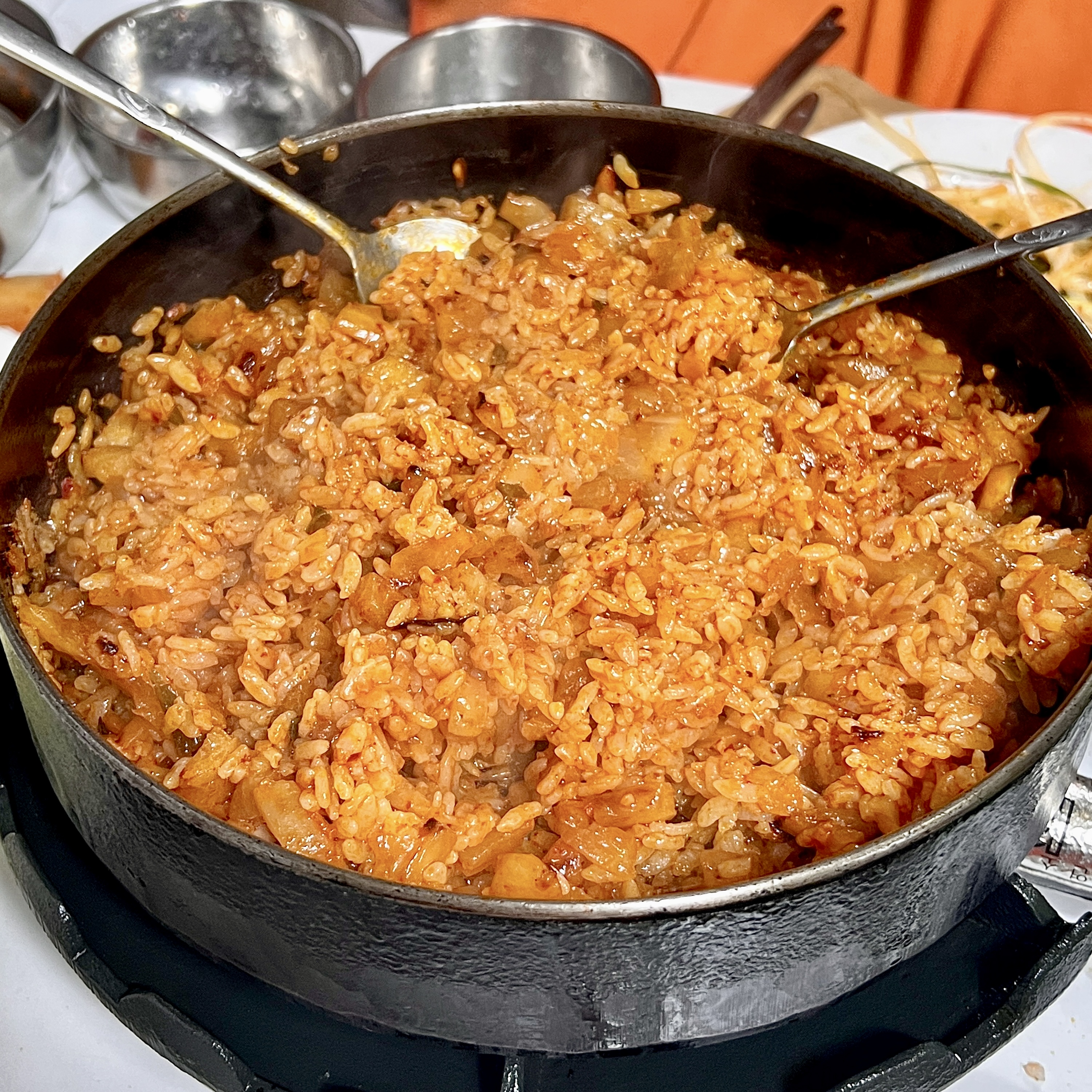 고기를 먹고나선 꼭 깍두기 볶음밥을 주문하자. 밥을 비벼 볶아줄 때 다들 넋놓고 쳐다보게 된다. 사진만 봐도 예상되는 그 맛이긴 한데 그것보다 더 맛있다. 깍두기살이 섞인 볶음밥 한 숟갈에 등심 한 조각을 올려 함께 씹으면 재미있는 식감을 즐길 수 있다.