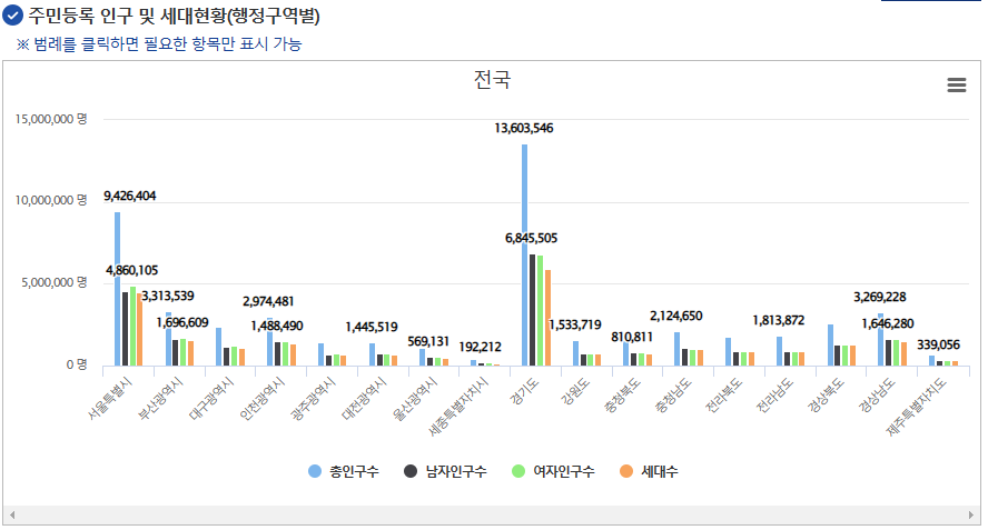 현재 우리나라의 인구는 몇명일까? 쉬운 질문 같지만 그리 간단하진 않다. 인구를 집계하는 기준에 따라 값이 달라지기 때문이다. 통계청은 51,558,034명(2023년), 행정안전부는 51,414,281명(2023년 3월)로 집계하고 있다.
