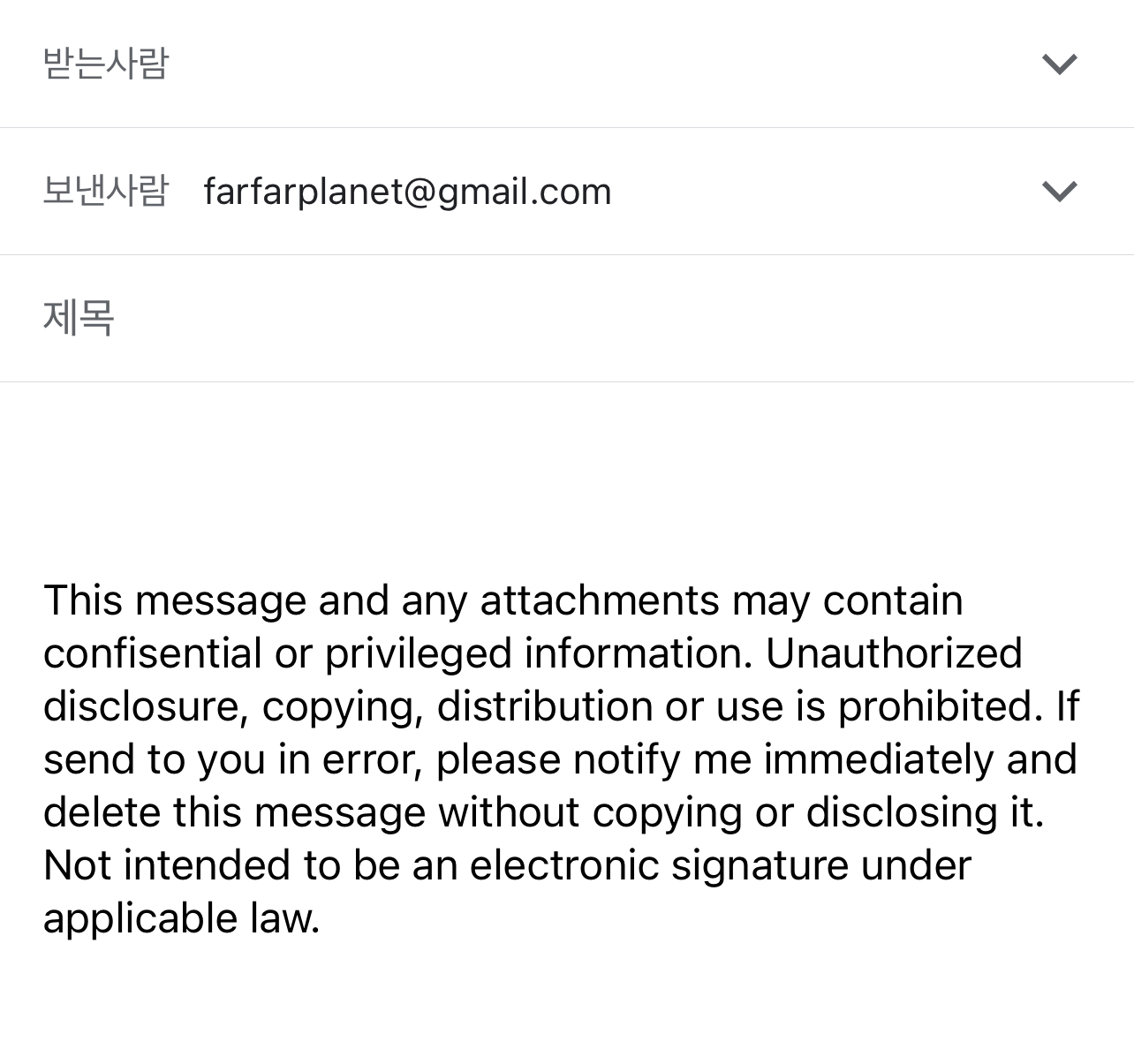 본 이메일에는 법률상 공개가 금지되거나 공개하여서는 안 되는 비밀정보가 포함되어 있을 수 있습니다. 본 이메일을 받으신 분이 해당 수신인이 아니거나 또는 본 이메일을 해당 수신인에게 전달할 책임이 있는 직원 또는 대리인이 아닌 경우, 본 이메일을 전파 또는 배포하거나 복사하는 것은 엄격히 금지되어 있습니다. 만일 본 이메일이 잘못 전송되었을 경우에는 즉시 발신인에게 알려주시고 귀하의 컴퓨터에서 본 이메일을 삭제하여 주시기 바랍니다. 이 메일의 발신인은 컴퓨터 바이러스 등으로 인하여 발생할 수 있는 문제에 대하여 책임을 부담하지 않습니다. 메일의 수신인께서도 바이러스의 존재 여부를 사전에 검사하시기 바랍니다.